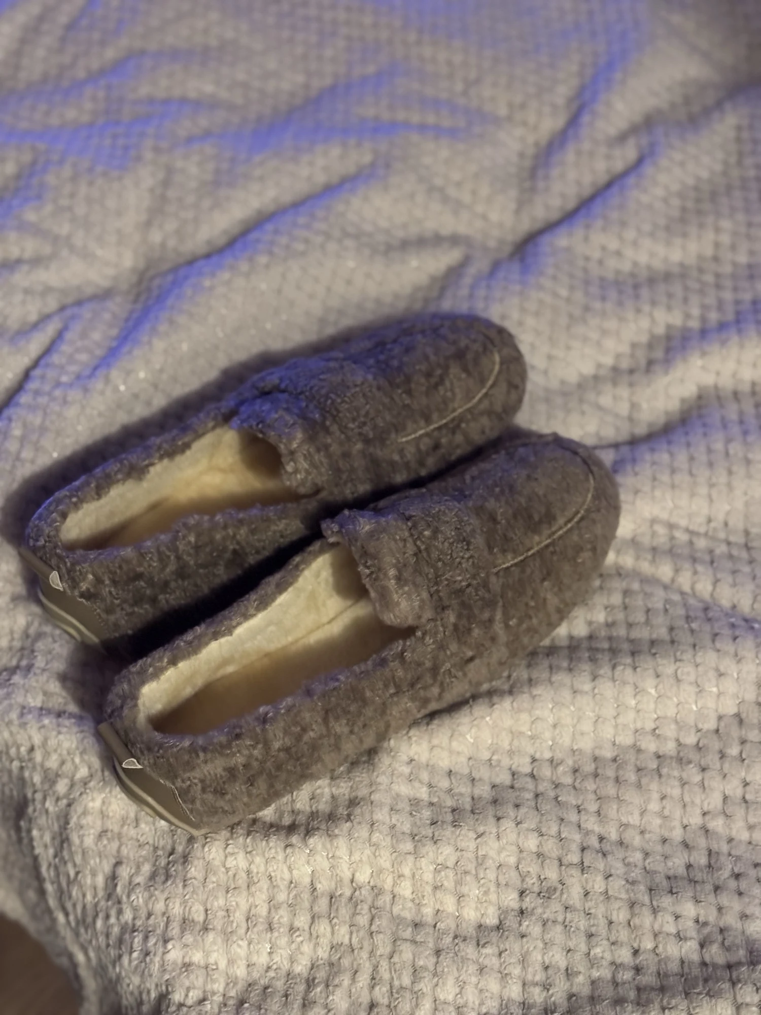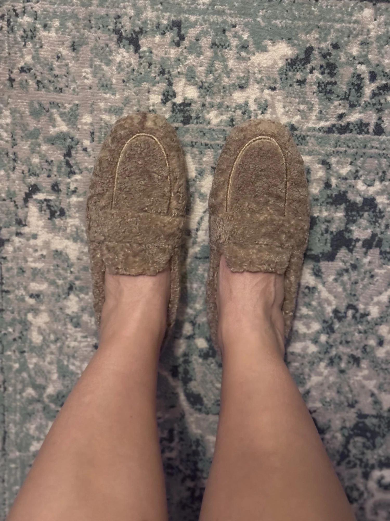 La matière bouclée est de super qualité et la couleur café au lait est très chic.Ils vont parfaitement avec mes pyjamas en maille. Je recommande !